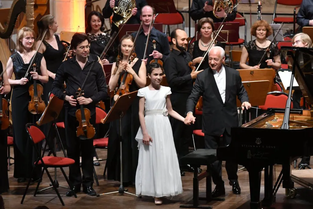 На фестивале Спивакова широко представлено поколение молодых, в том числе, юные дарования, стипендиаты фонда Спивакова: лауреат фортепианных конкурсов Саша Довгань исполнила под руководством маэстро Концерт Моцарта.