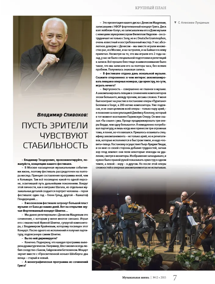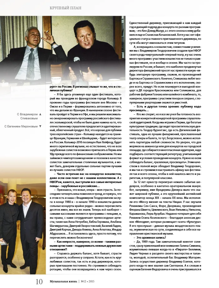 12.12.2015По итогам VIII Московского музыкального фестиваля "Владимир Спиваков приглашает..."Интервью Владимира Спивакова и Георгия Агеева журналу "Музыкальная жизнь", № 12, 2015Читать на сайте издания Назад к прессе об оркестре