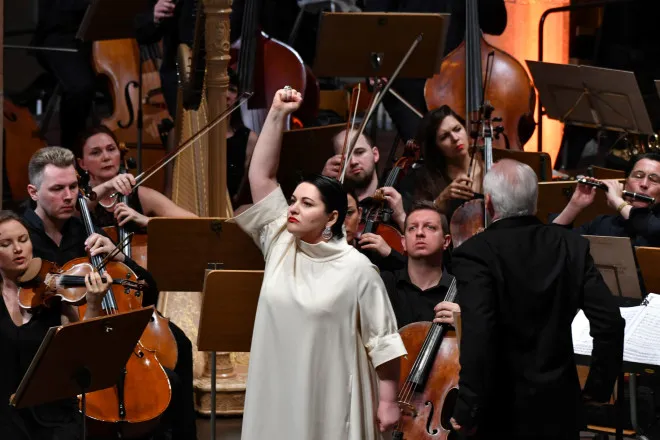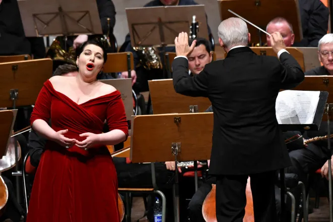 Две Леоноры начали и увенчали концерт. В арии «Pace, pace» первой из них из «Силы судьбы» голос певицы то возносился к раздирающим душу верхам, то источал роскошную бархатную мягкость. В полном соответствии с текстом отрешенно прозвучала «fatalità», в нужный момент к самым высоким нотам подключилось вибрато, и ария завершилась поднятым вверх кулаком.